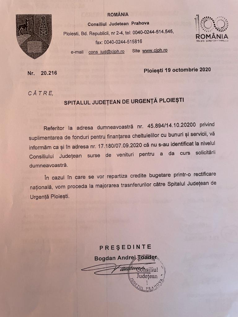 ”Iată documentele care atestă refuzurile sistematice ale lui Bogdan Toader, fostul președinte al Consiliului Județean Prahova (CJPh), de a aloca fonduri Spitalului Județean de Urgență Ploiești (SJUP) pentru ca acesta să fie pregătit să facă față Pandemiei.