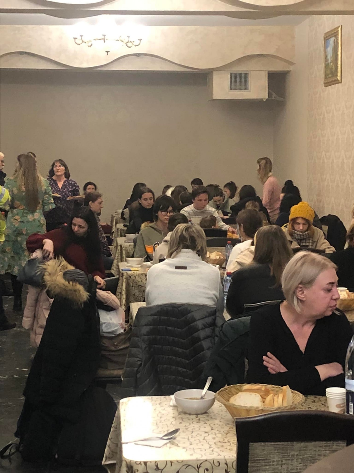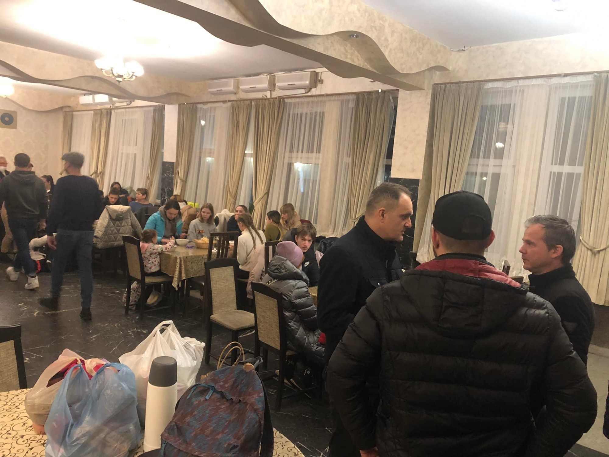 ”Este 4.30 și intr-o atmosferă de iarnă siberiană am finalizat primirea ,înregistrarea și cazarea a 80 de copii și femei ucraineni!