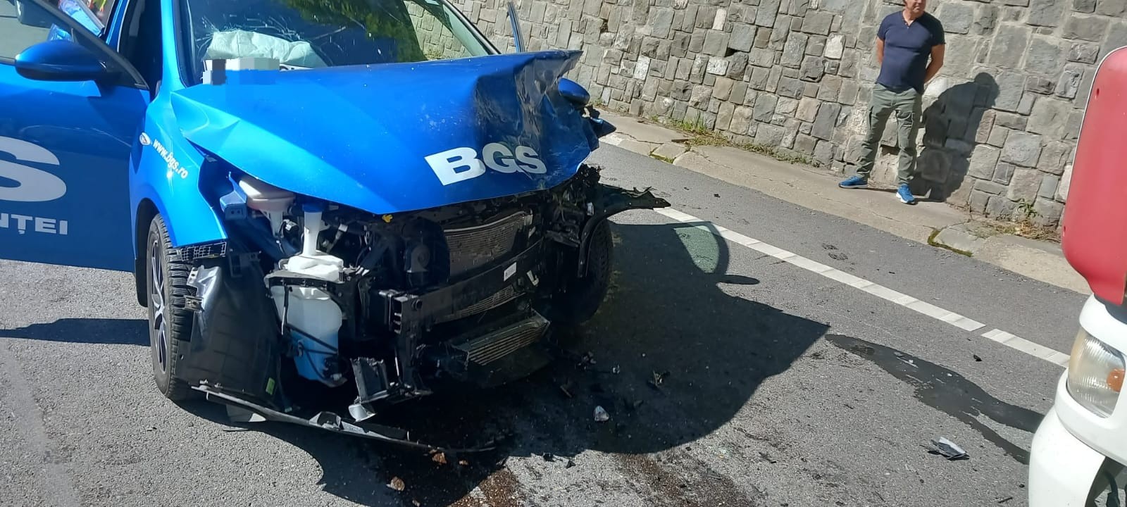 Imaginile surprinse la fața locului arată că una dintre mașinile implicate aparține unei firme de securitate.
